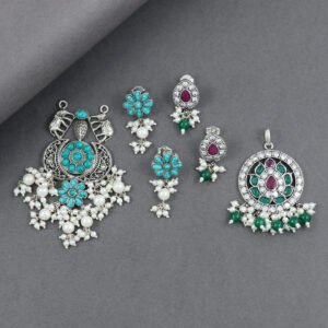 Art Green Traditional Fancy Long Earrings Combo Set