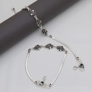 Floral Gemstone Silver Anklet