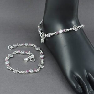Indian 925 Real Sterling Silver CZ Oxidized Anklets