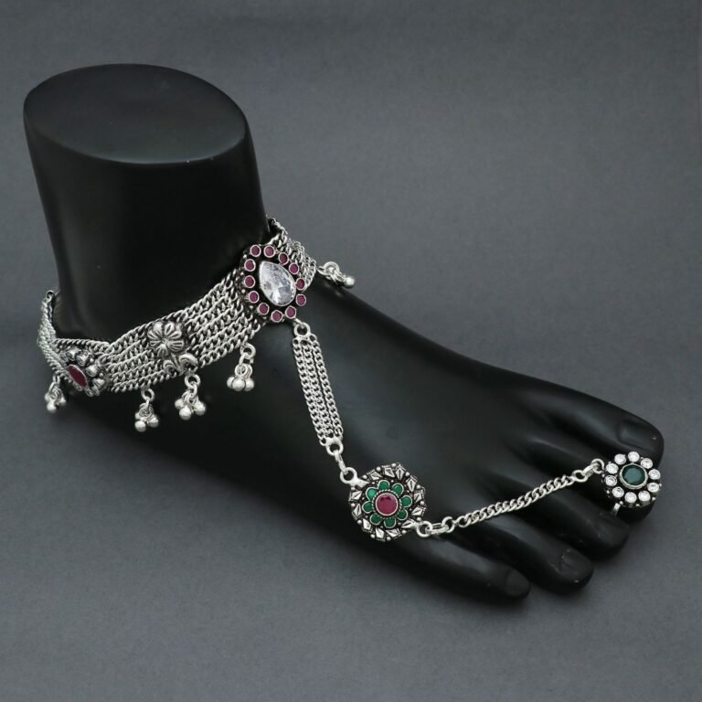 Make a statement with the Majestic Charm Anklet, a luxurious piece crafted from pure 925 silver. This payal boasts intricate heavy work, making it the perfect accessory for those seeking elegance and opulence. Ideal for wholesale buyers who want to offer a touch of grandeur in their collection.