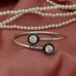 This delicate sterling silver bracelet features beautiful white pearls and an elegant charm design that exudes sophistication. The combination of sterling silver and lustrous pearls creates a refined and timeless look, making it perfect for both everyday wear and special occasions. The bracelet’s subtle charm adds a touch of glamour, making it a versatile piece that enhances any outfit with understated elegance.