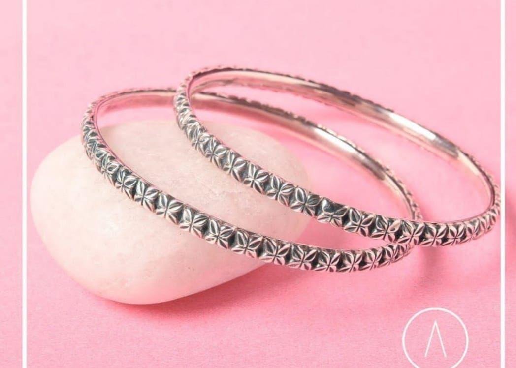 The Silver Bangles are timeless accessories that add elegance and sophistication to any outfit. Crafted from high-quality silver, these bangles feature a classic design that makes them perfect for both casual and formal occasions. Their lightweight and comfortable fit ensures they can be worn all day long. Whether stacked for a bold statement or worn individually for a subtle touch, these silver bangles are an essential addition to your jewelry collection.